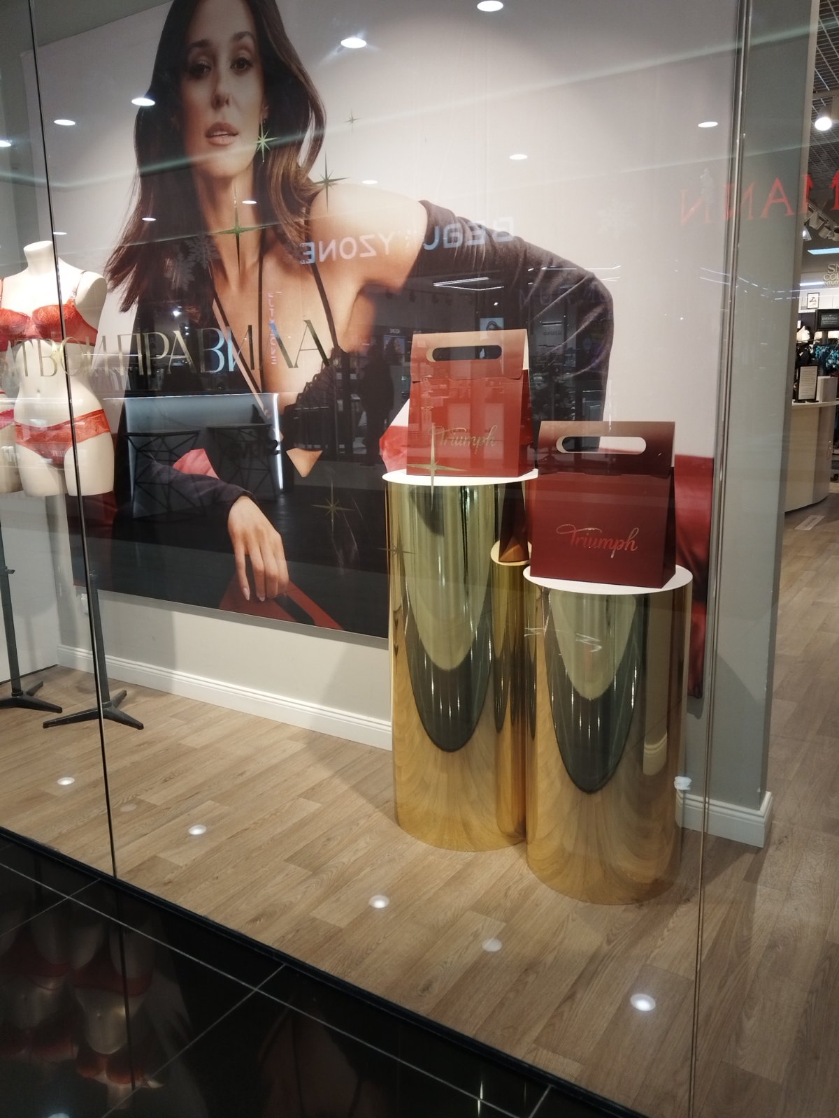 Оформление витрины — стенд демонстрационный Triumf, магазин белья